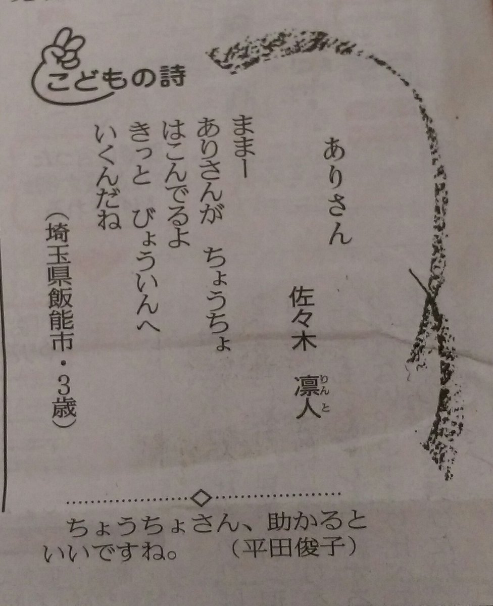 【画像】3歳「ままー!ありさんがちょうちょをはこんでるよ!」