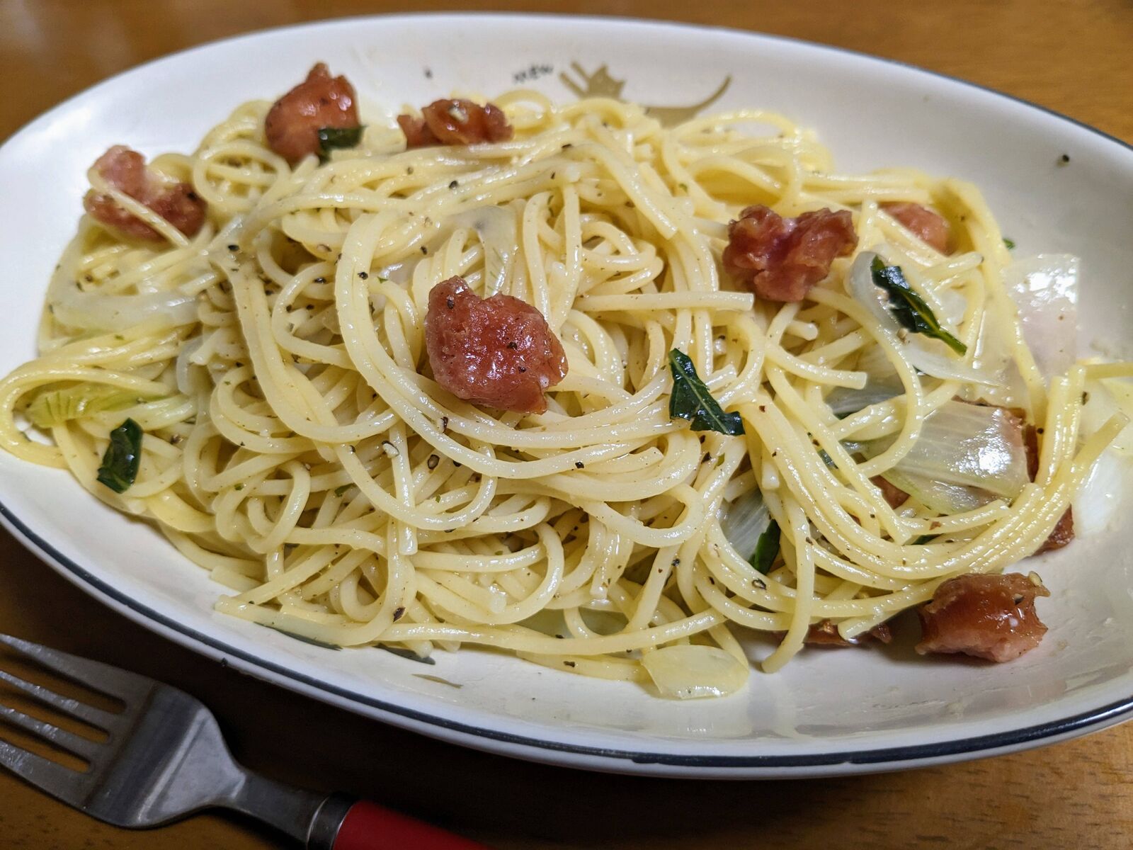 【画像】ヒキニートわい、ごろごろソセージのペペロンチーノを作る