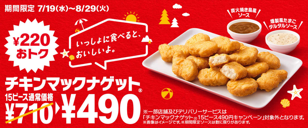 【画像】マクドナルドのナゲット、本日より15ピース490円&新ソース2種類発売