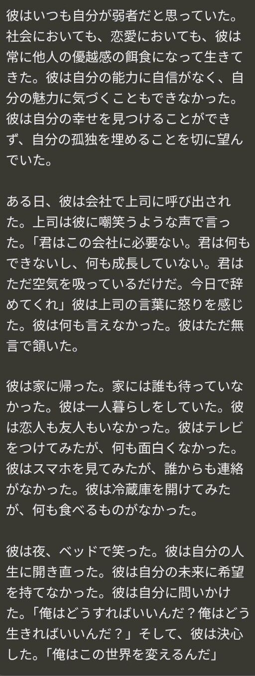 【画像】AI「弱者男性の小説書いた!w」wwwwwwwwwwwwwww
