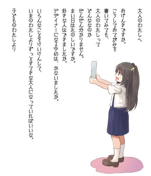 【画像】女の子「大人のわたしへ。デザイナーになるゆめは、かないましたか?」