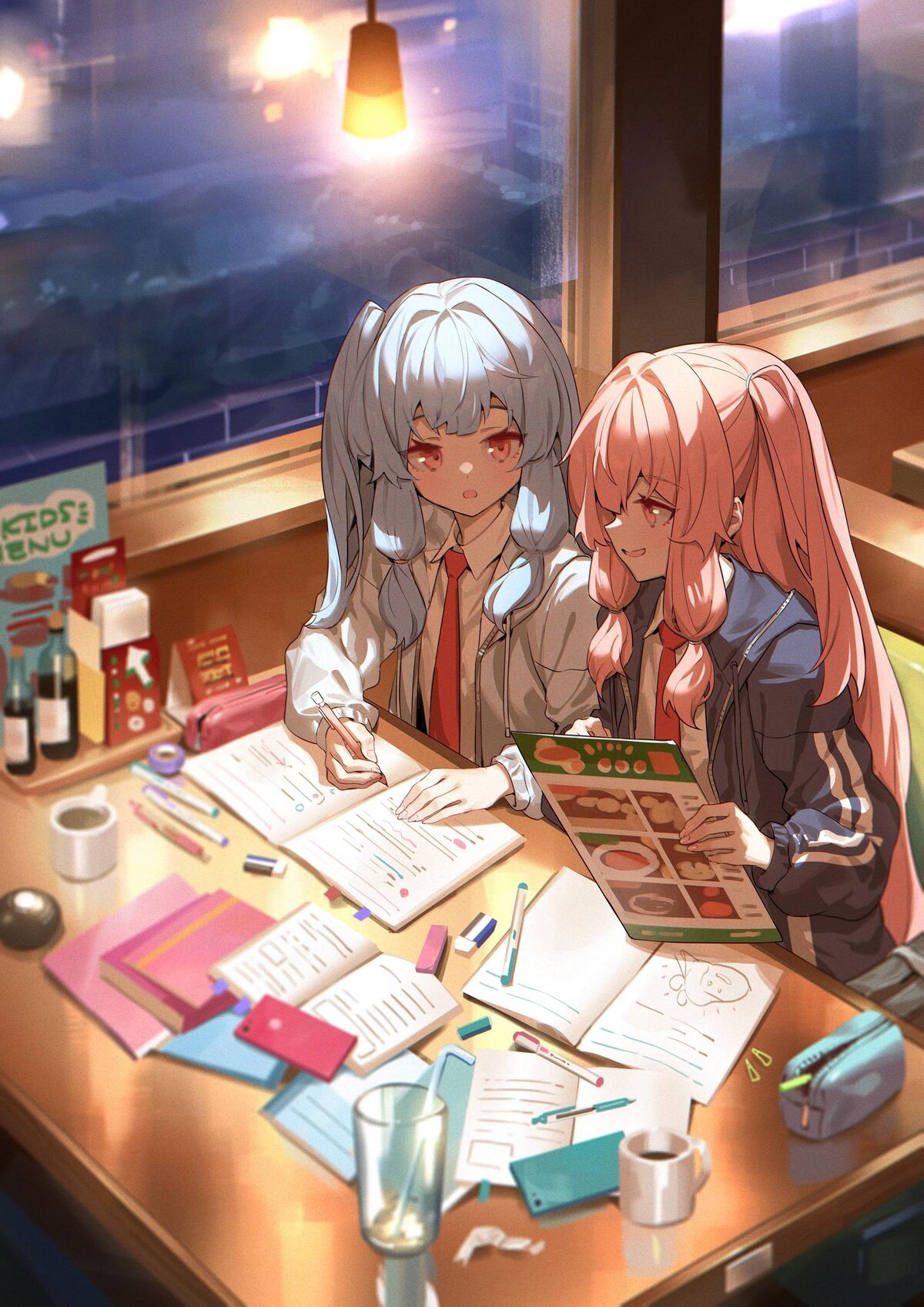 【画像】仲良しJK姉妹、ファミレスで一緒にお勉強wwwww