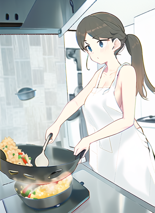 【画像】ワイのアッネ(26)、裸エプロンでチャーハンを作り出してしまう