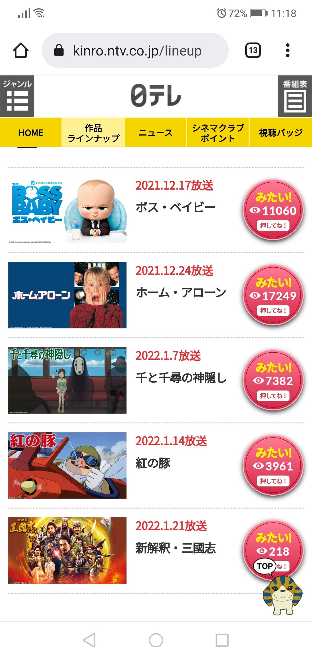 【画像】金曜ロードショーさん年末年始に本気を出す模様
