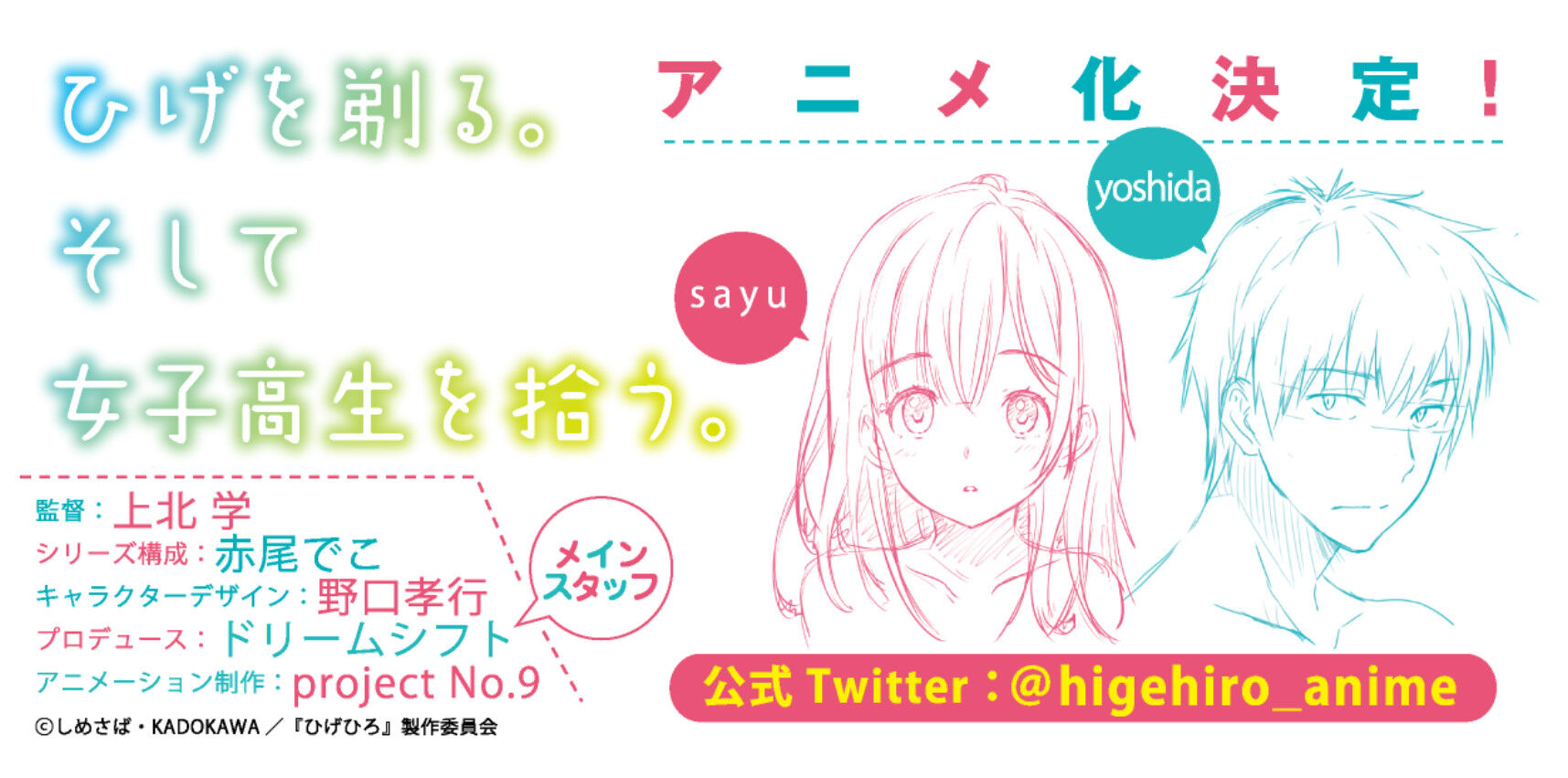 《ひげを剃る。そして女子高生を拾う。》TVアニメ化決定!制作はproject No.9