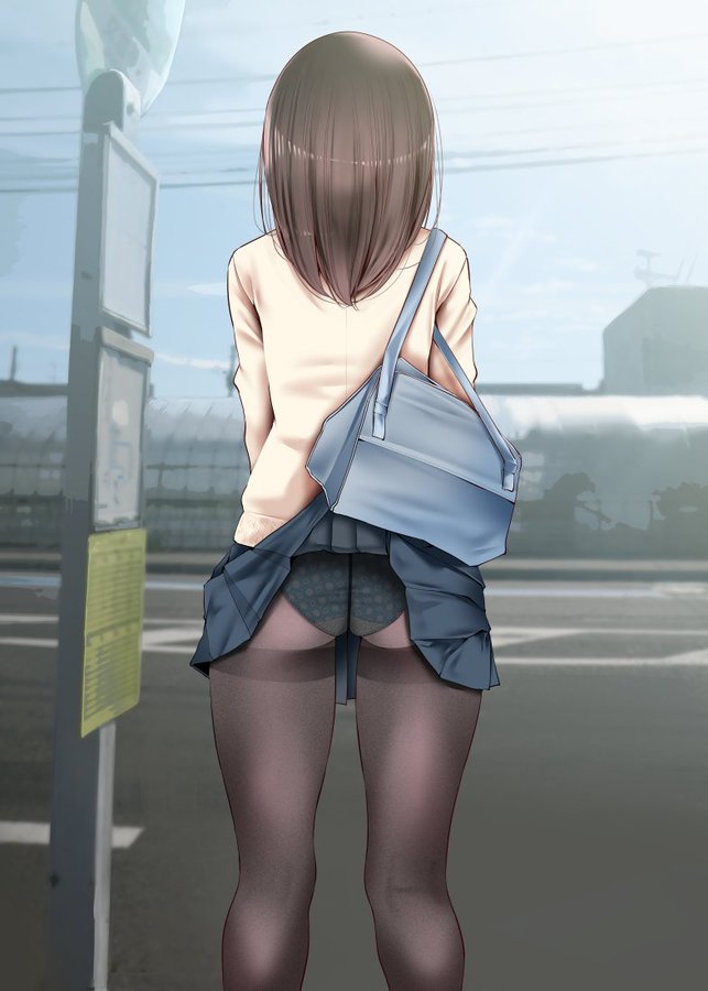 画像】バス停でスカートがめくれてるJKちゃんがたまらん