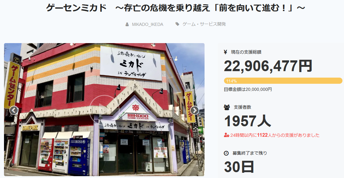 閉店危機だった高田馬場ゲーセンミカド、クラウドファンディングしてから1日で2000万円集まる