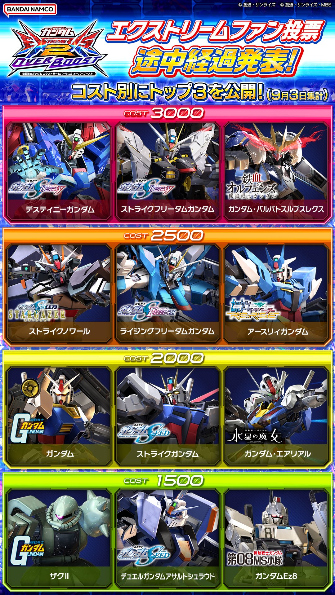 【ガンダム オバブ】コスト別トップ3の途中経過発表!