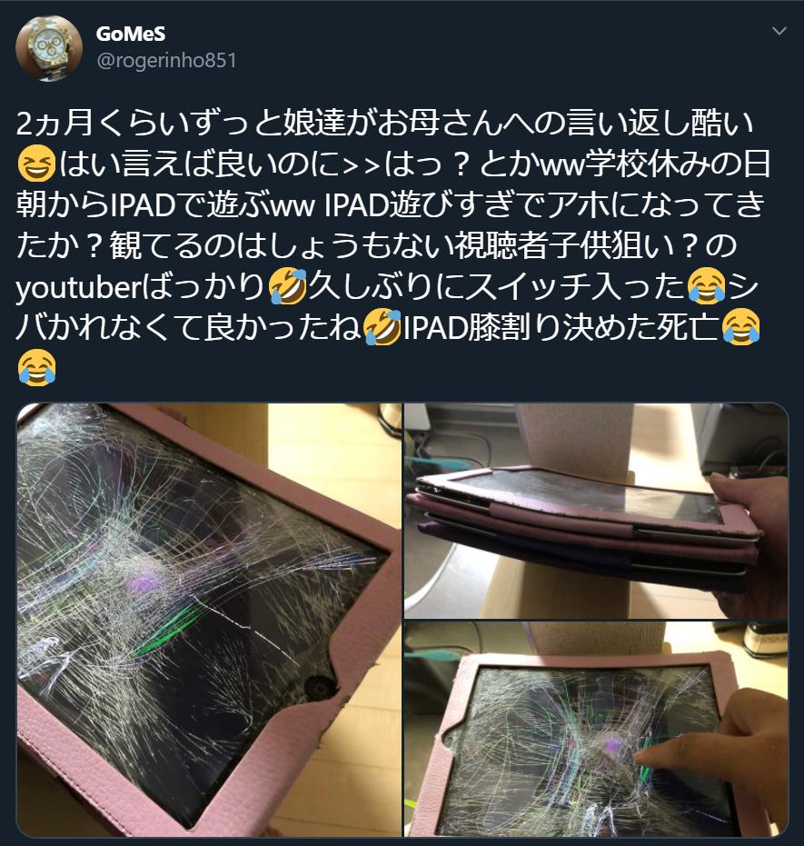 【悲報】ツイッター民さん、娘のiPadを破壊する・・・・・・