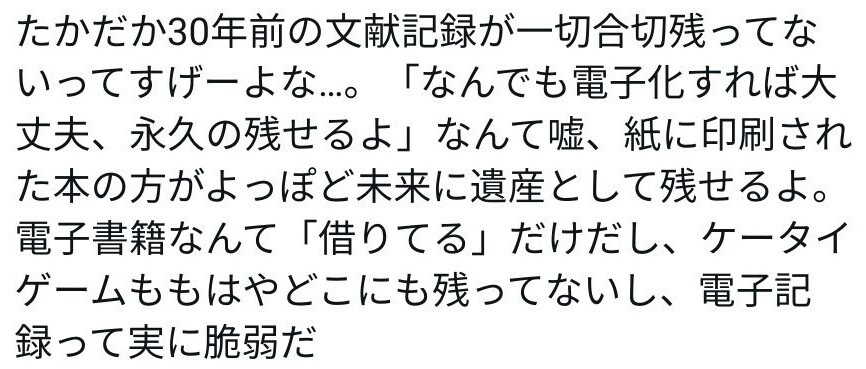【ネット】デジタルデータ「永遠に残せるのが利点!」←結構消えてない?