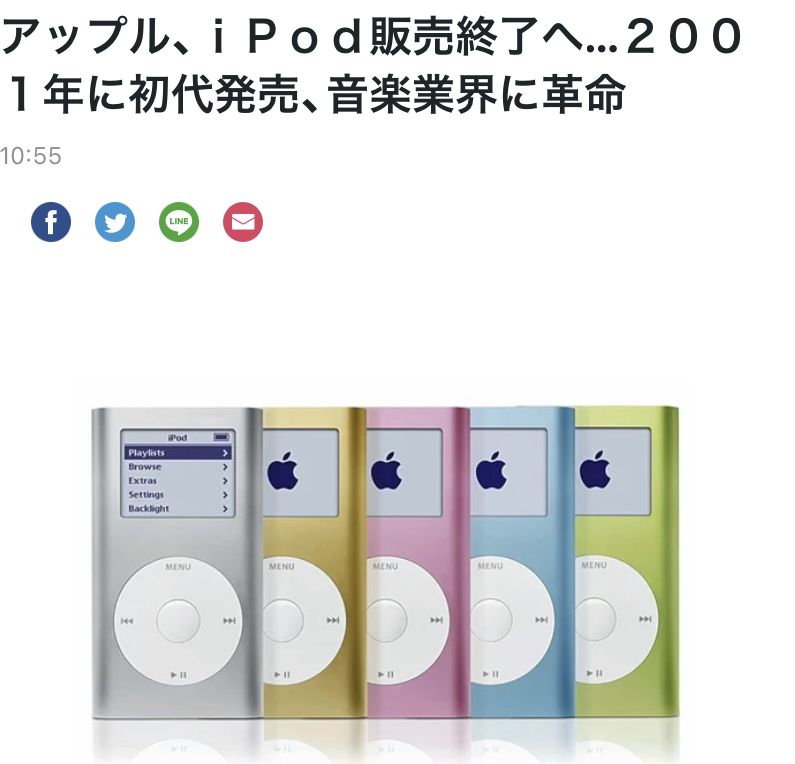 【音楽】iPod 販売終了へ