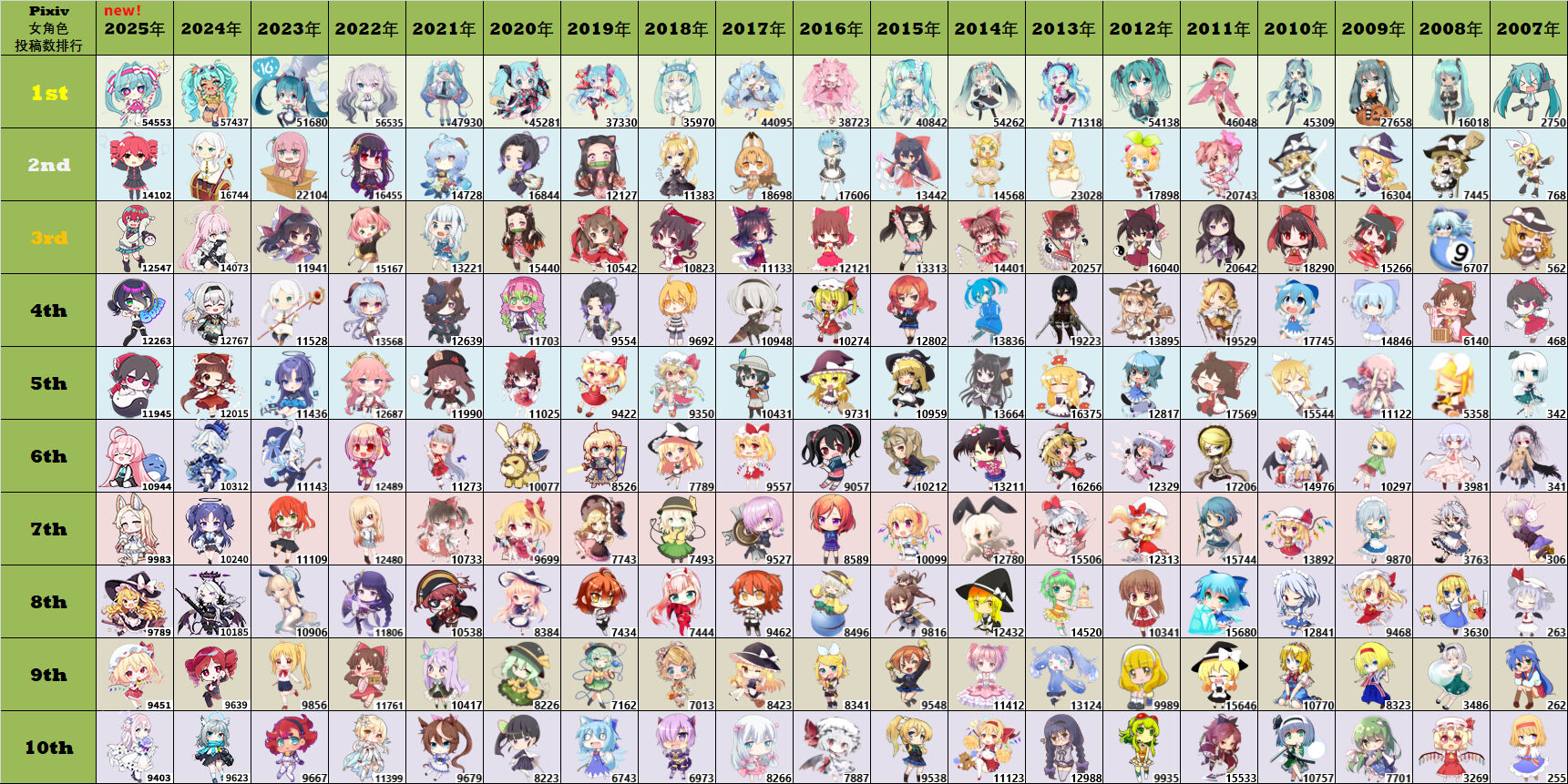 【東方】女キャラPixiv投稿数ランキング2025年版