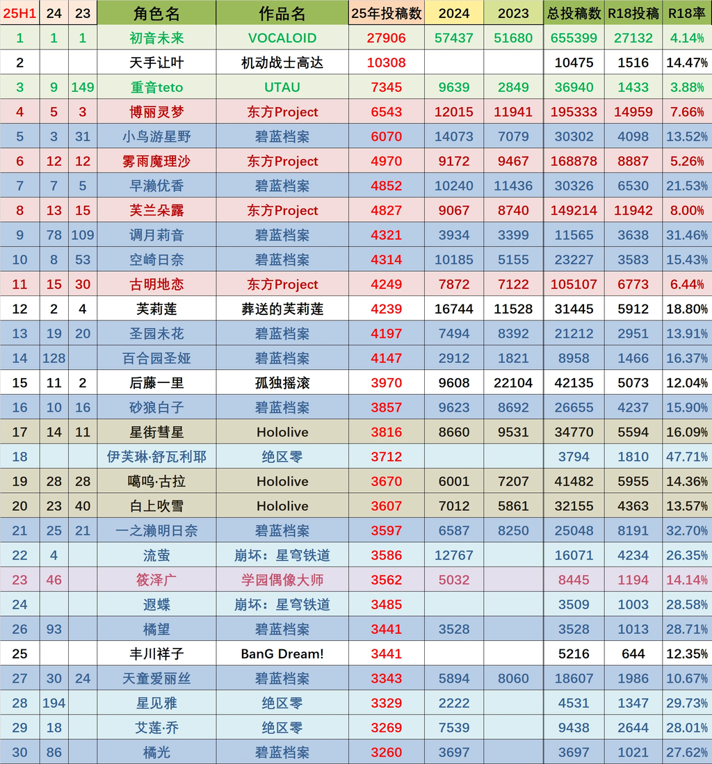 【東方】2025年上半期にpixivで投稿された女性キャラランキング