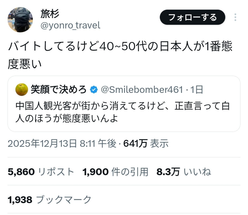 【悲報】アルバイター「中国人より40~50代の日本人が1番態度悪い」