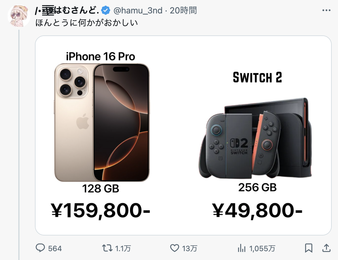 【悲報】オタク、iPhoneとSwitch2の「記憶容量」を比べて大はしゃぎするwwww