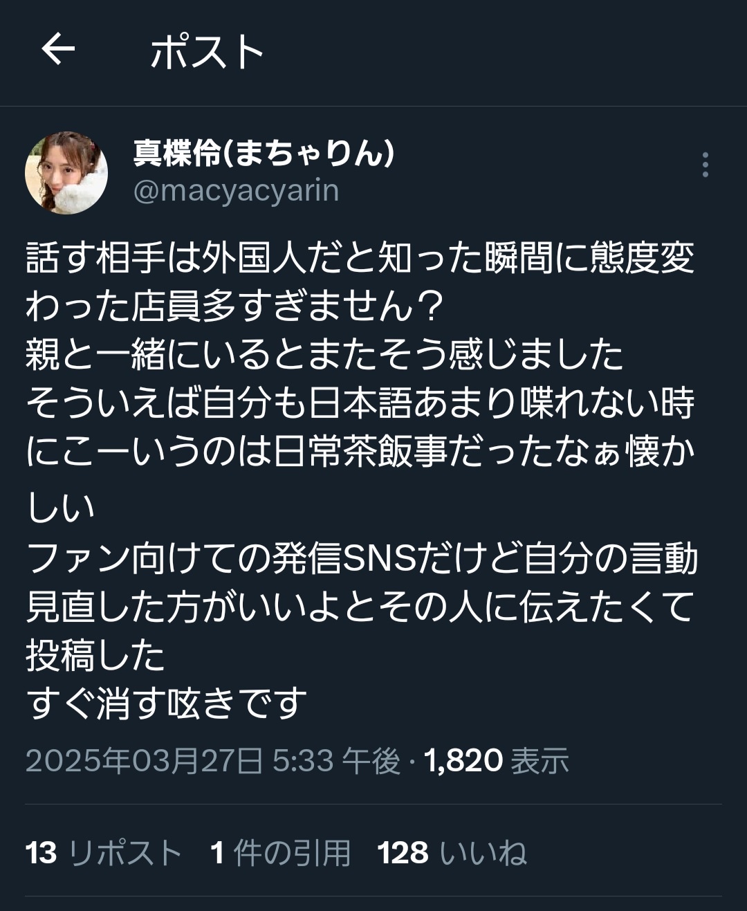 【悲報】台湾出身のアイドル「外国人だと分かった瞬間に態度変える店員多すぎない?」