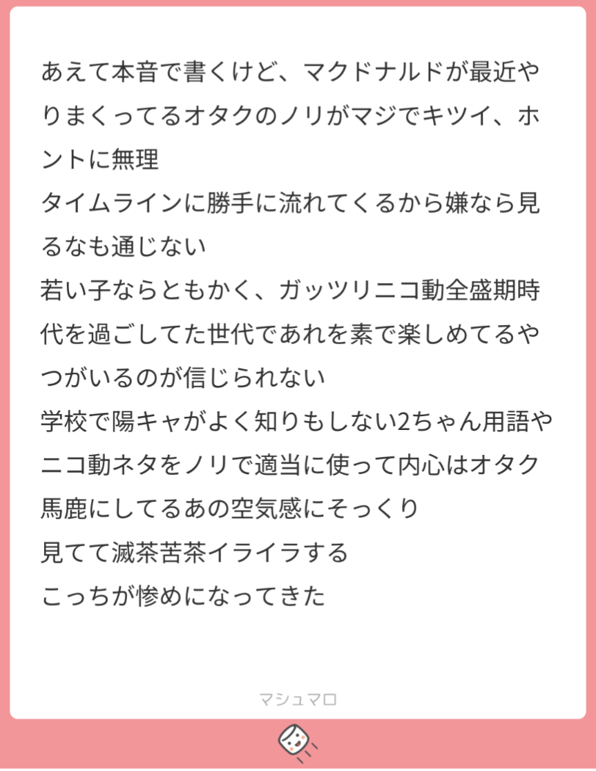 【悲報】オタク、マックの「オタクノリ」に嫌気が差して壊れるwwww