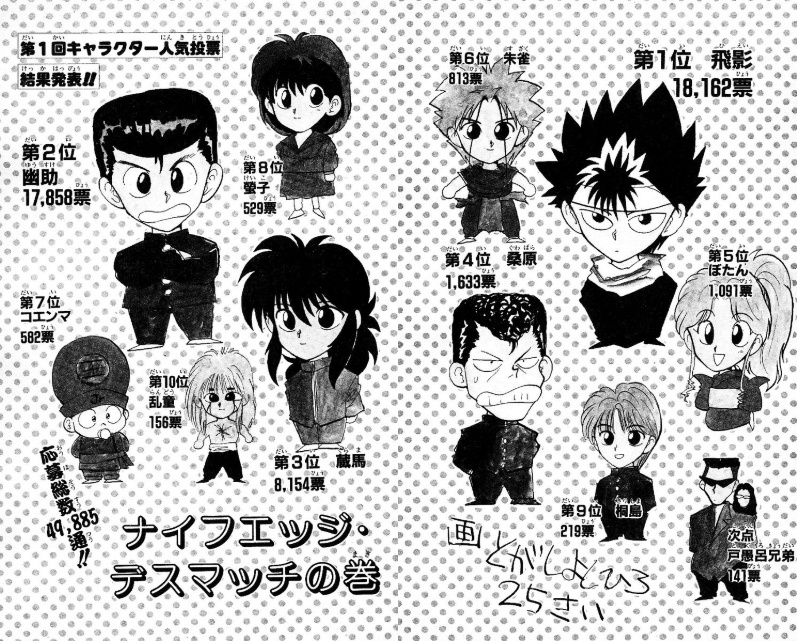 【悲報】幽遊白書、謎のキャラが人気投票9位になってしまうwwww…