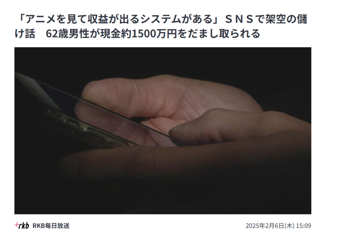 【悲報】62歳男性「アニメ見るだけで稼げる最高の仕事を見つけた!」→1500万円詐欺られるwwww