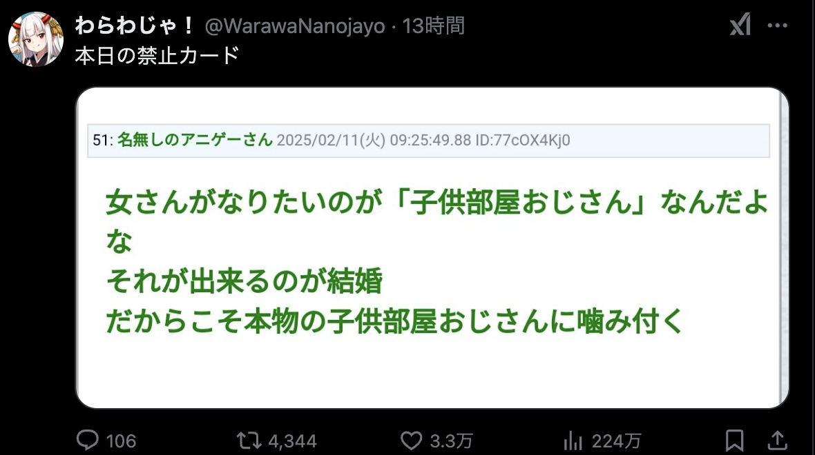 【悲報】アニメアイコン「女がこどおじをバカにする理由、これです」