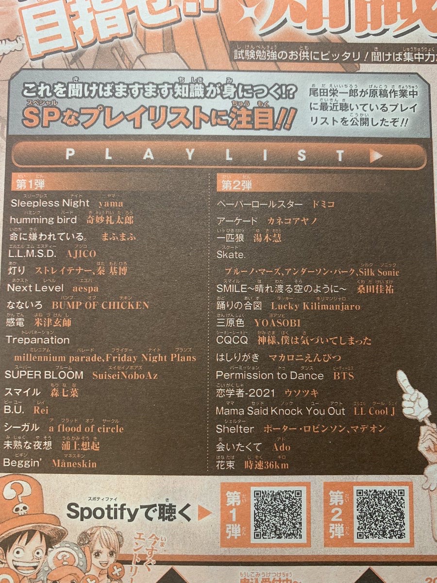 【画像】ワンピース作者「作業中のプレイリスト晒せ?まぁ…いいよ」→