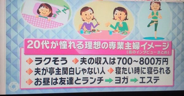 【画像】20代女さん「ウチらの『理想の専業主婦』ってこれだから!」ドンッ!