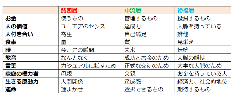 【画像】「貧乏人」と「金持ち」の価値観の違いがこれらしい。お前ら当てはまってるか?wwww