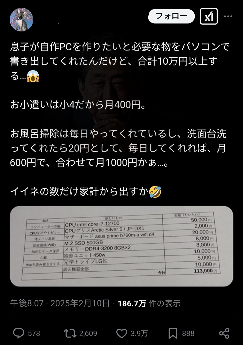 【画像】小4キッズのママ「息子が自作PC組みたいって言って欲しいパーツのリスト見せてきた!」