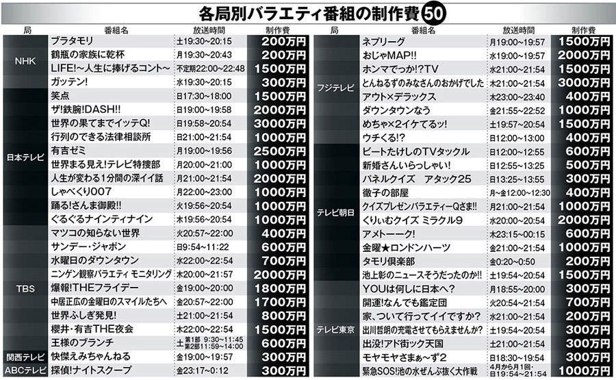 【画像】テレビ番組の「制作費」、ガチでヤバかったwwww