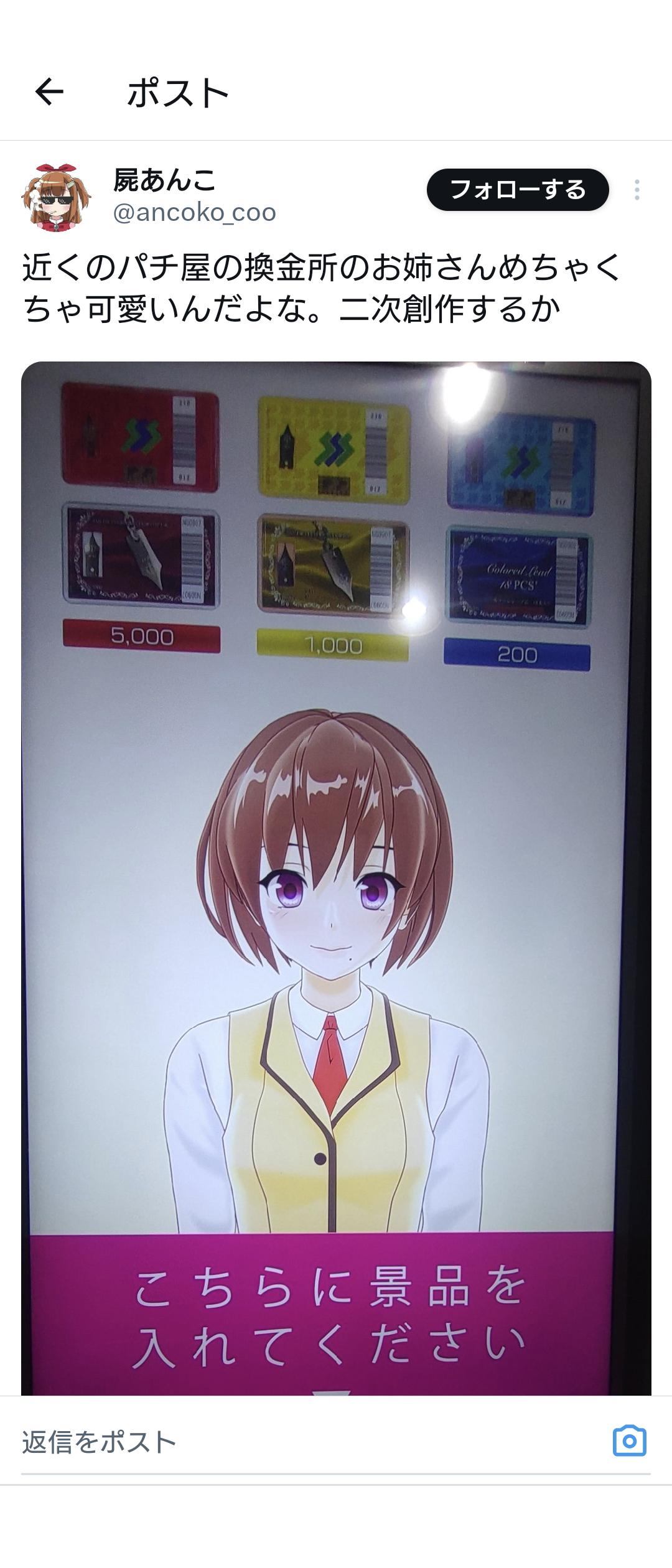 【悲報】パチ屋換金所のBBA、めっちゃ可愛い萌えキャラ化され二次創作イラストまで描かれるwwwwwwww