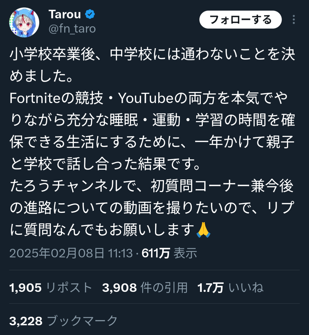 【朗報】小学生ゲーム配信者、中学に通わないことを決意するwwww
