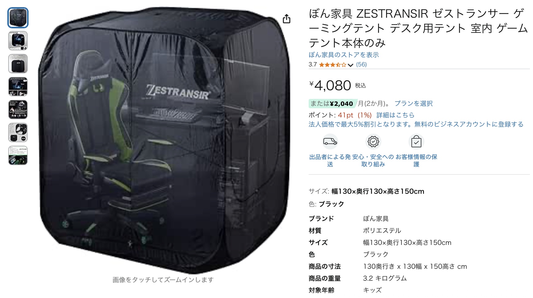 【画像】この「室内専用ゲーミングテント」買うか迷ってるんだがどう思う?