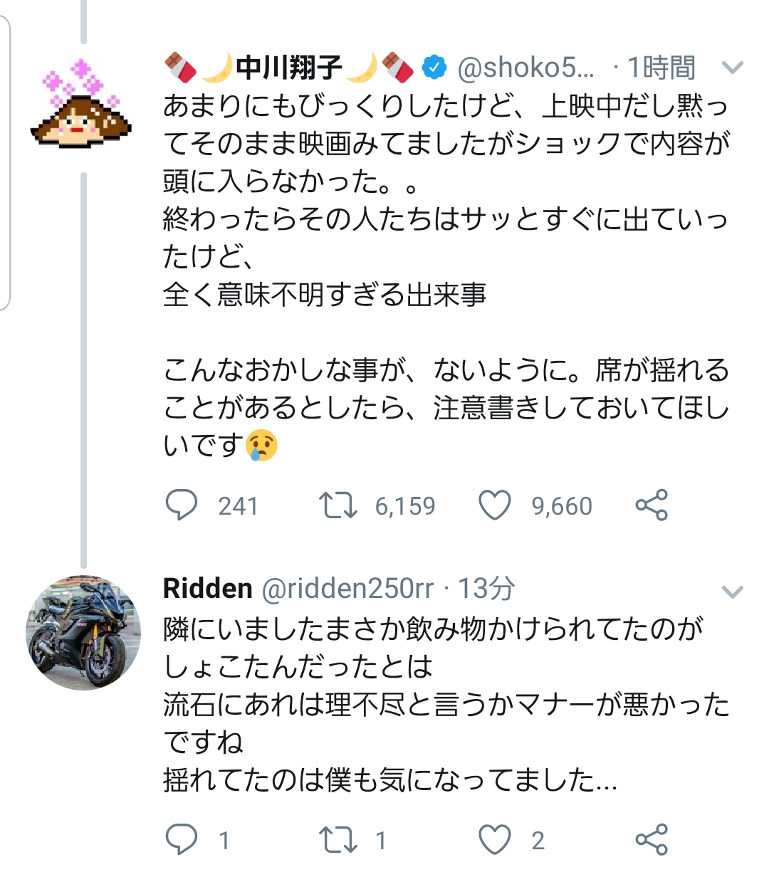 【悲報】中川翔子さん、映画館でジュースをかけられベトベターになってしまう
