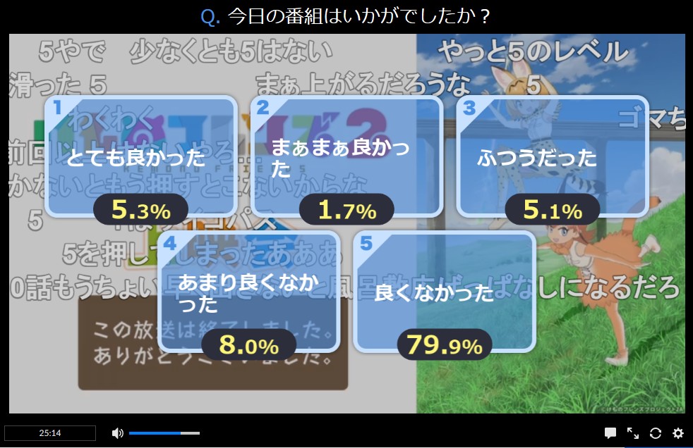 【画像】けもフレ2、キュルル転落回のニコ生アンケ結果wwww