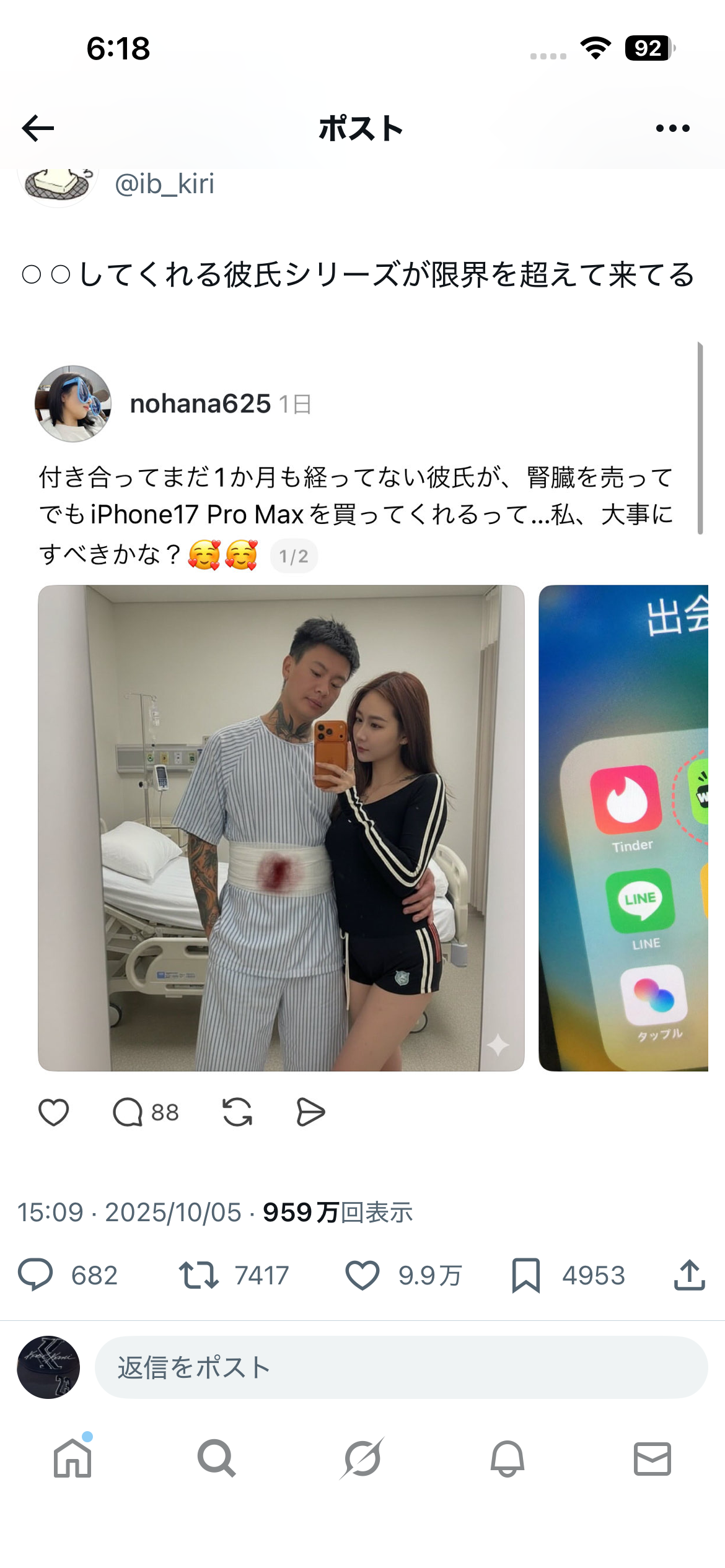 【画像】女さん「彼氏が腎臓を売ってiPhone買ってくれた!」(パシャッ