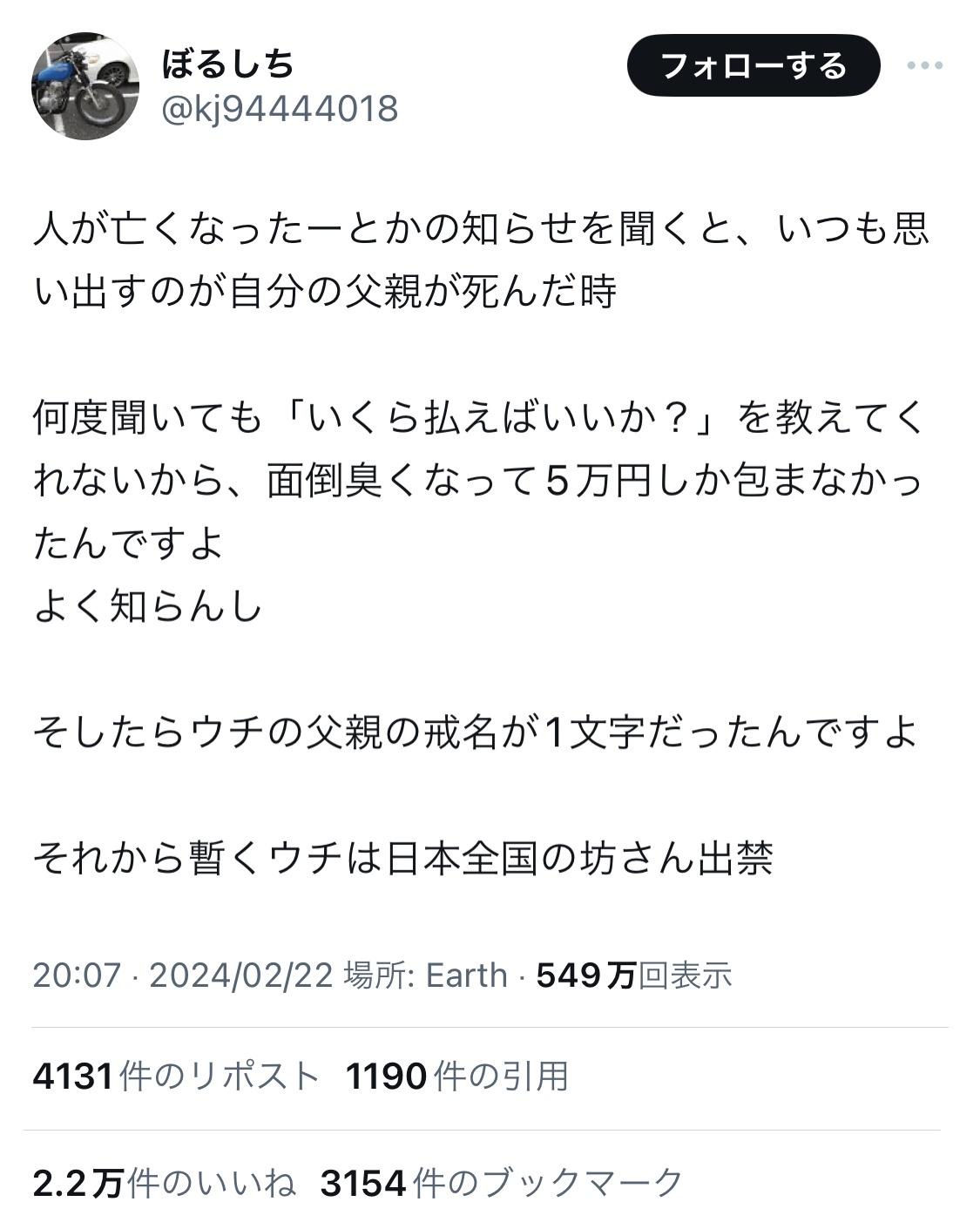 【悲報】坊さん「戒名?お気持ち程度で十分ですよ」遺族「じゃあ5万円で」→結果wwww