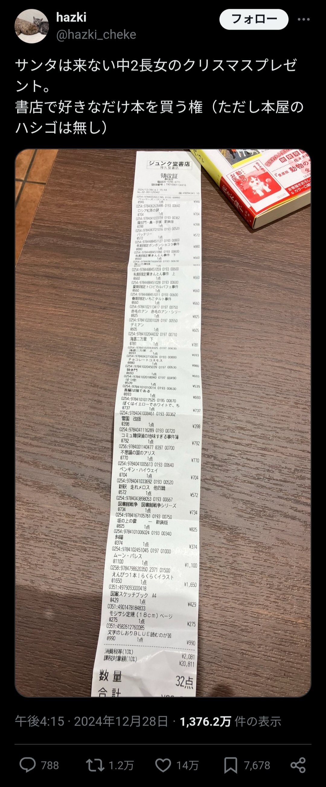 【画像】中2女子、クリスマスプレゼントに選んだ本のチョイスが渋いwwww