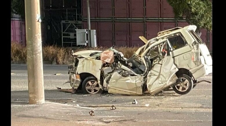 【画像】高校生が無免許運転して事故った車、見るも無残な状態になる。どうしたらこうなるんだ…?