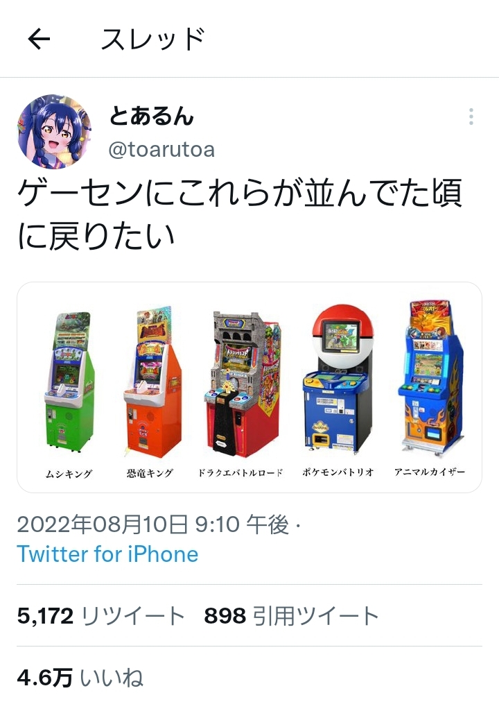 【画像】アニメアイコン「ゲーセンにこれらが並んでた頃に戻りたい!」パシャ