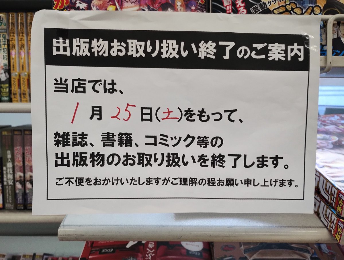 【悲報】コンビニ、遂に「書籍売り場」が消えるwwww