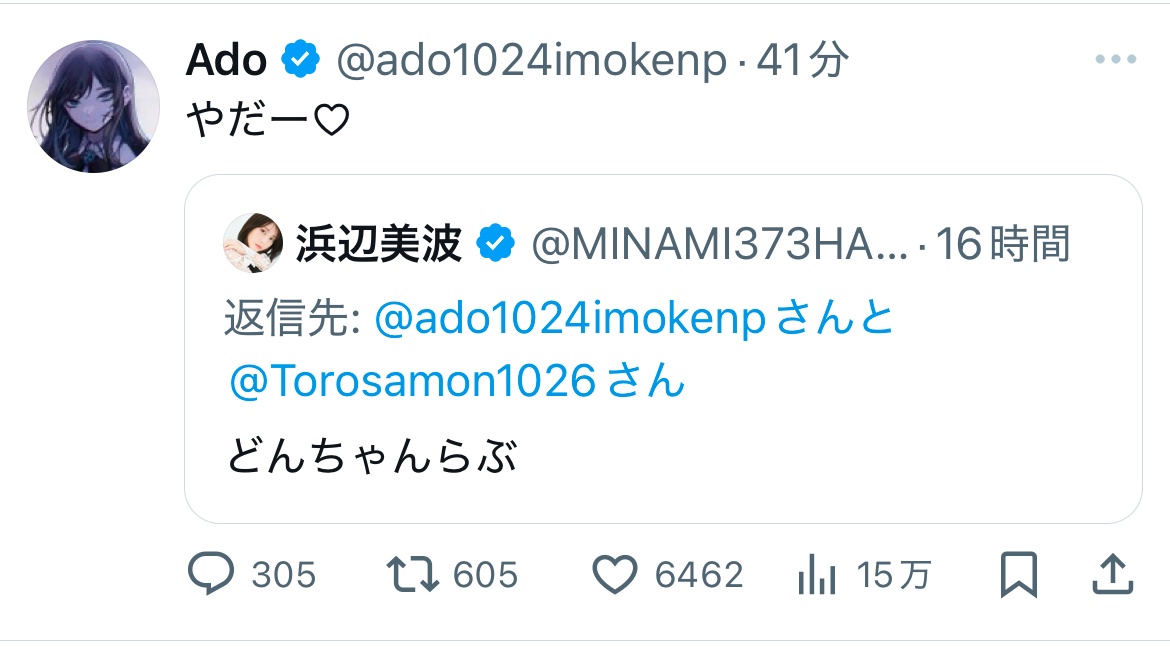 【画像】Adoちゃん、あの超人気女優とXでイチャつくwwww