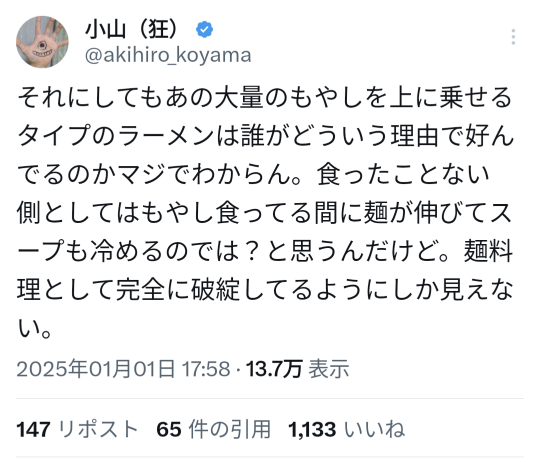 【悲報】識者「二郎系ラーメンは麺料理として破綻してる。大量のもやしを食ってる間に麺伸びますよね?」→炎上wwww