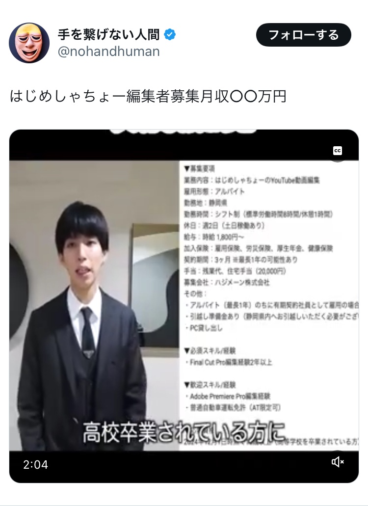 【悲報】大物YouTuber、動画編集者を募集するも給料が安過ぎると炎上するwwww