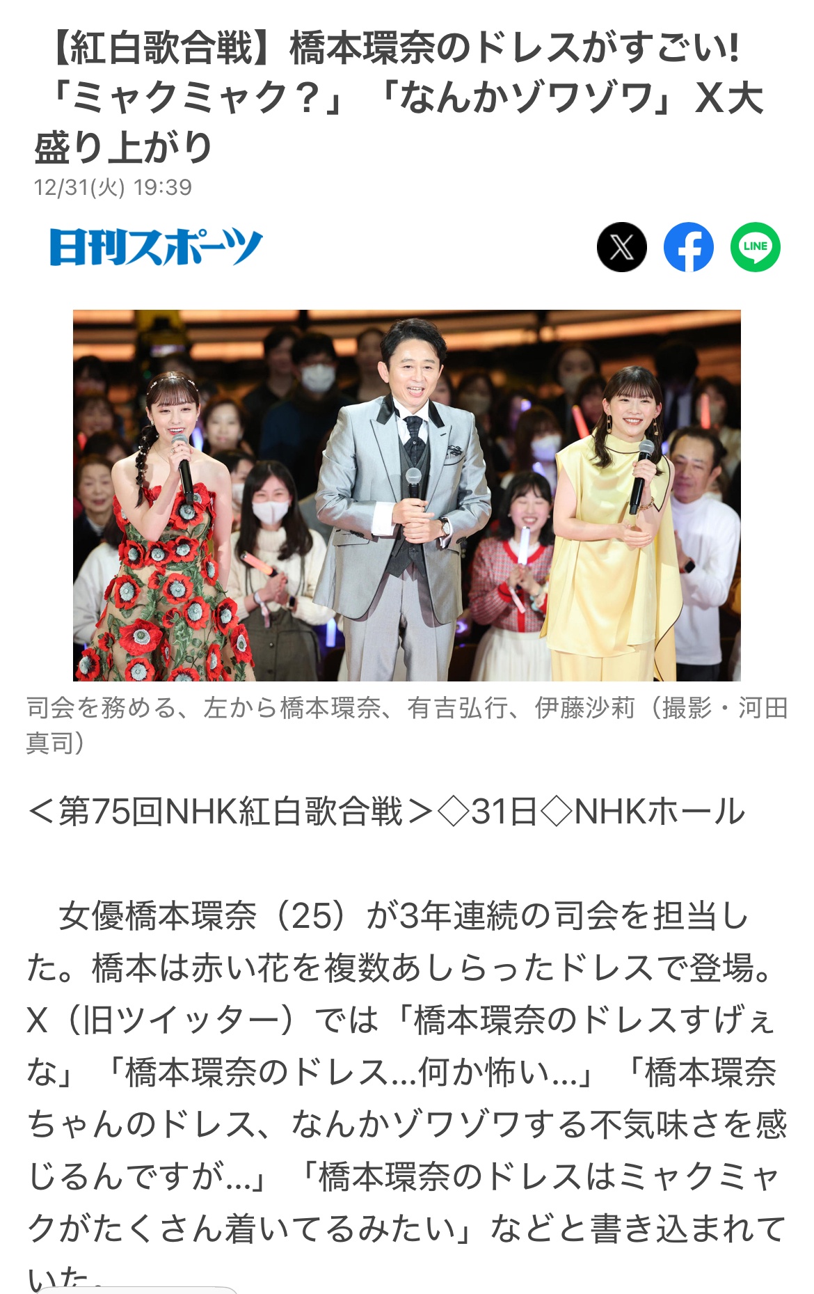 【画像】紅白の橋本環奈の衣装、「あのキャラ」に見えると話題にwwww