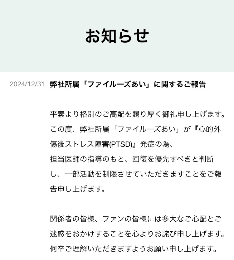 【悲報】人気女性声優さん、PTSDを発症し活動制限を発表