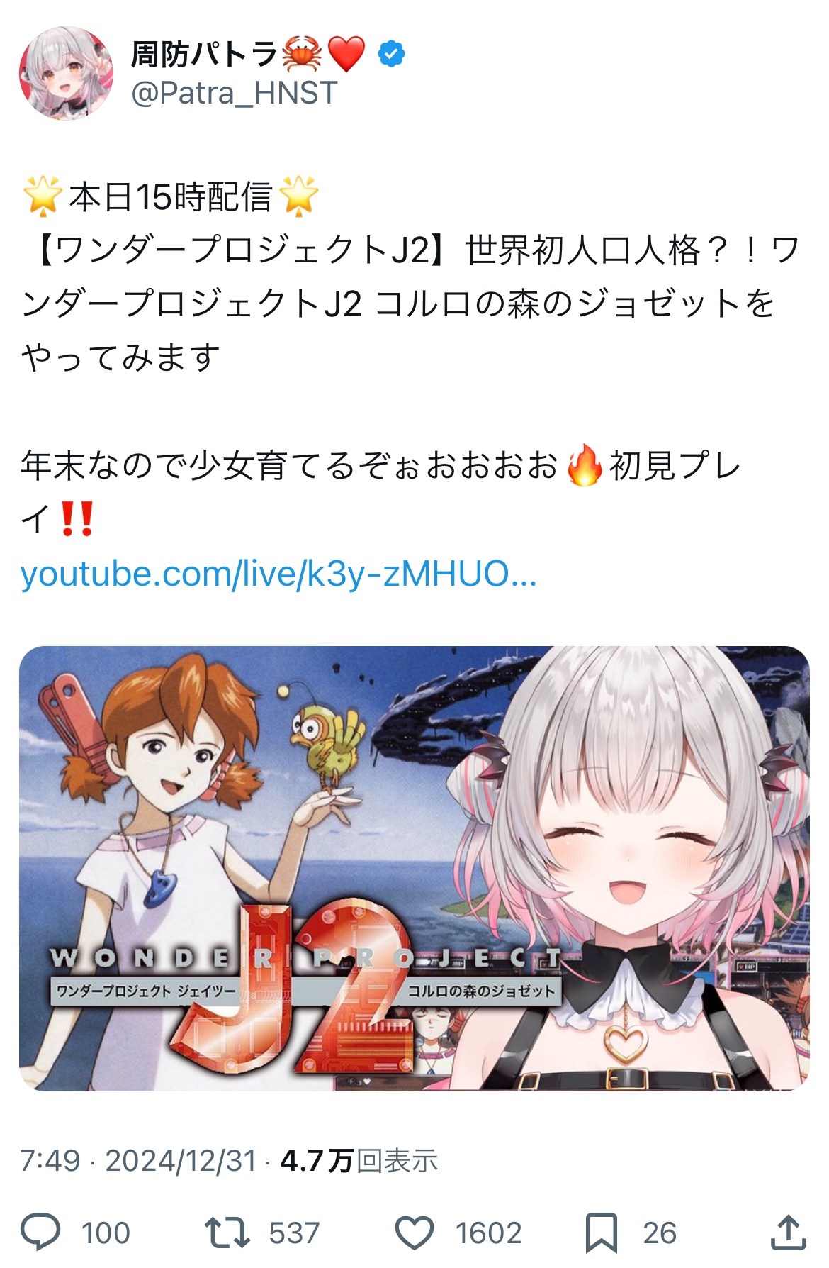 【悲報】超人気VTuber、大晦日なのにガチでおっさんしか知らないゲームの配信をして視聴者困惑wwww