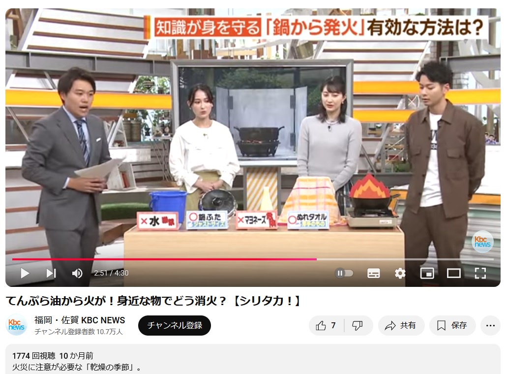 【画像】テレビ「てんぷら油から火!どれで消火する?」→A「水」B「鍋ふた」C「マヨネーズ」D「ぬれタオル」