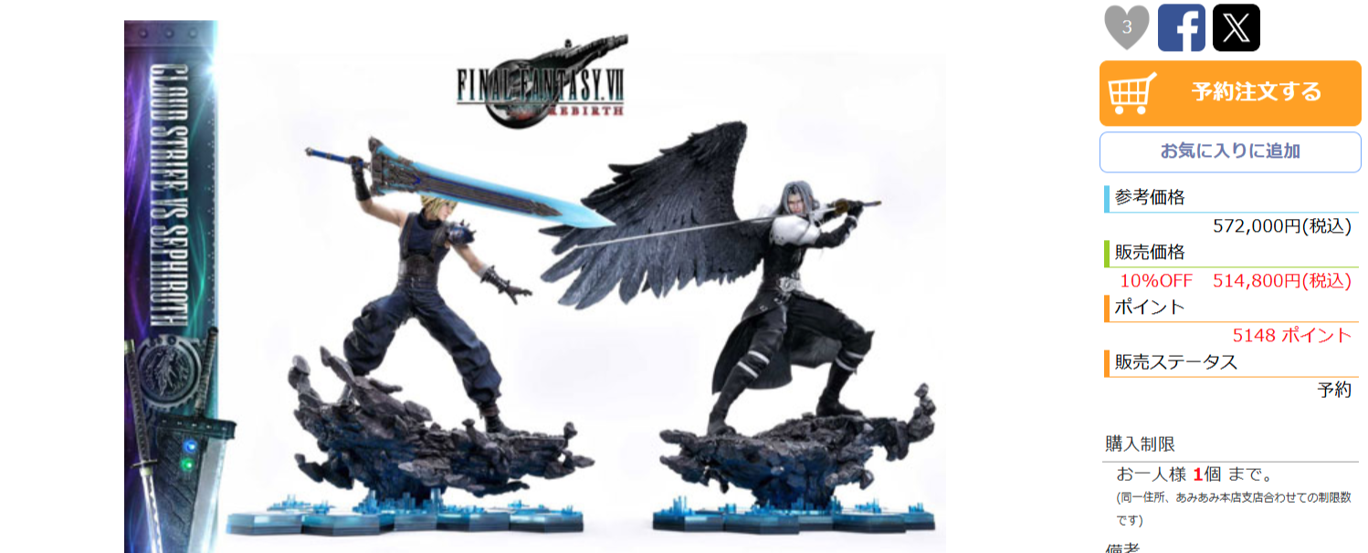 【画像】FFのフィギュア、とんでもないお値段で発売されてしまうwwww