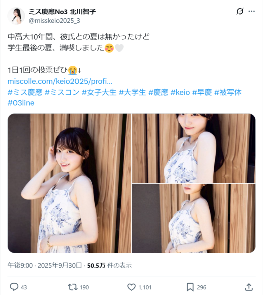 【画像】ミス慶應候補「中高大10年間、彼氏との夏は無かった」→弱者男性歓喜へwwww