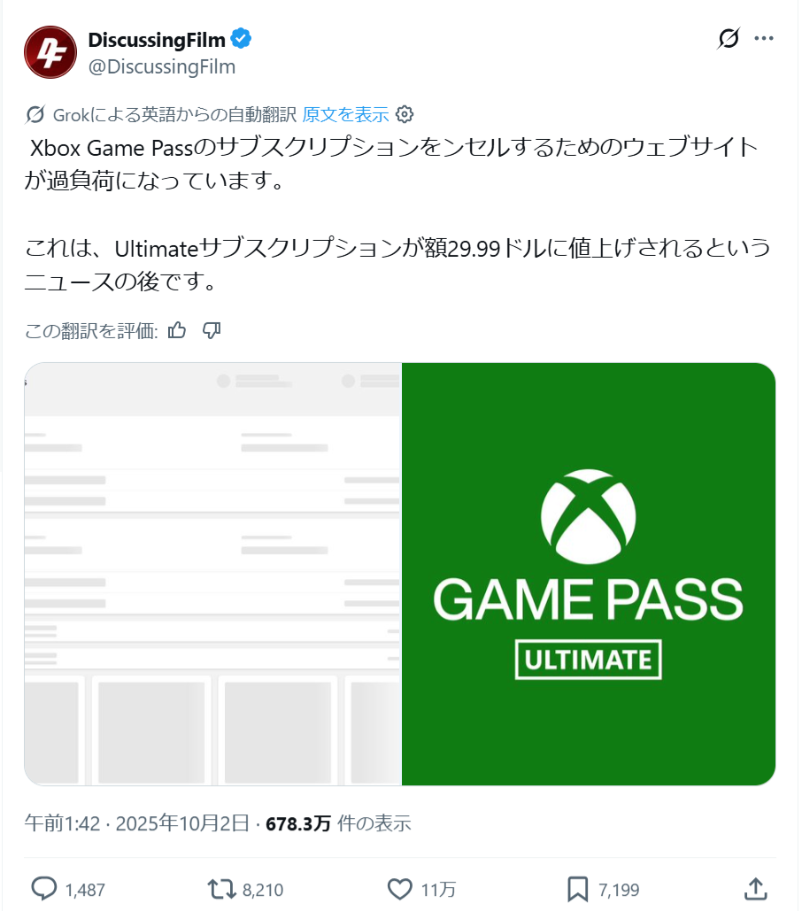 【悲報】Xboxゲームパスのサイト、値上げ発表後にサバ落ちした模様wwww
